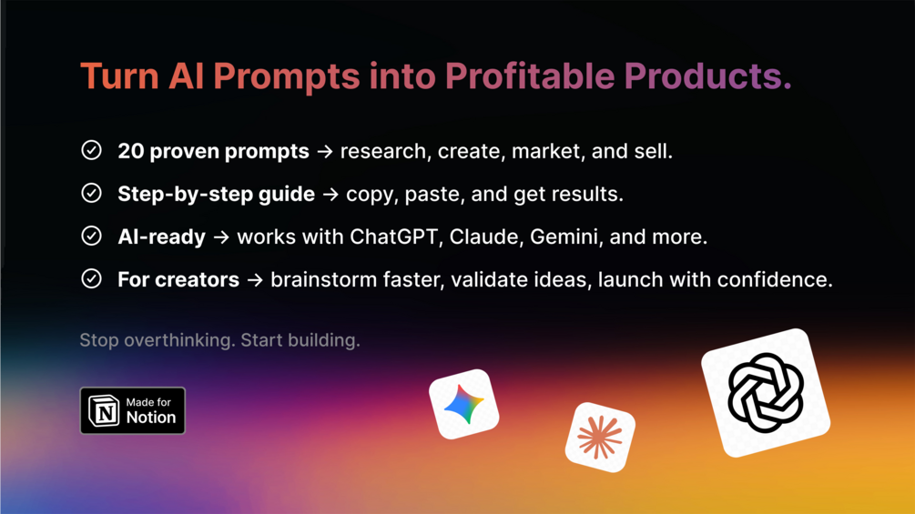 With AI Prompts for Digital Product Success, you’ll have everything you need to go from concept to customer with confidence.